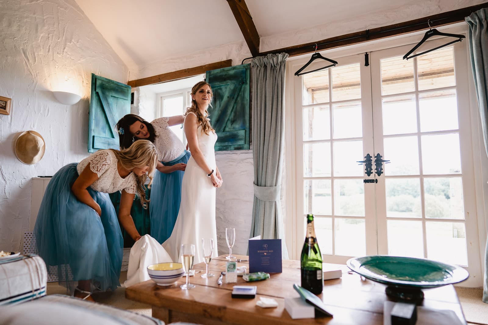 Trenderway Farm, nestled amongst fields near Looe on the South Coast of Cornwall, is a tranquil and peaceful place to pull up to on a wedding day. Arriving early to have a look around on the morning of Anne & Christon’s wedding, and strolling around the grounds and barns of Trenderway, I could see why they chose to hold their wedding there. It’s a bit lush! With a mixture of beautiful grounds and rolling fields, granite barns, quirky accomodation options, proximity to the coast, indoor and outdoor space, a wonderful wedding team to make sure everything runs smoothly; basically everything you need!